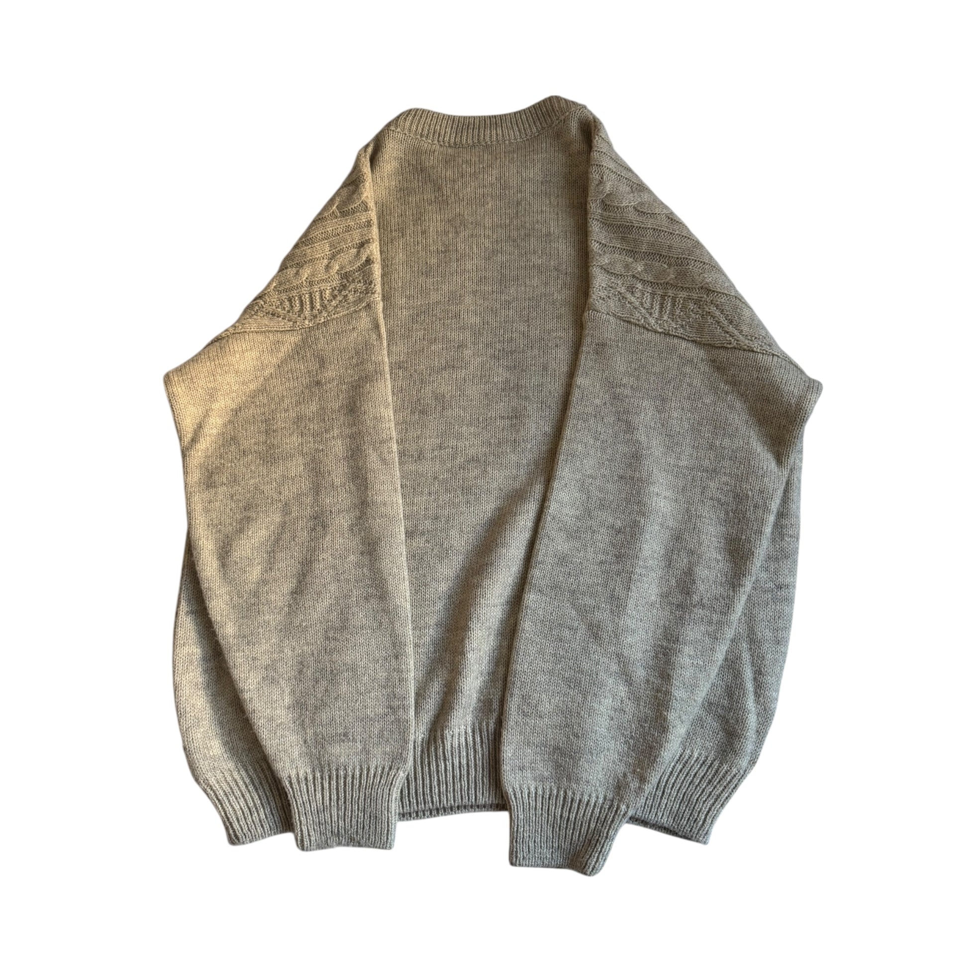 Pulover vintage fisherman într-o nuanță crem, fabricat în Italia, realizat dintr-un amestec de 30% lână și 70% acrilic. Croială clasică și confortabilă, perfect pentru ținute casual sau layering în sezonul rece. Se află în stare bună, fără defecte majore.