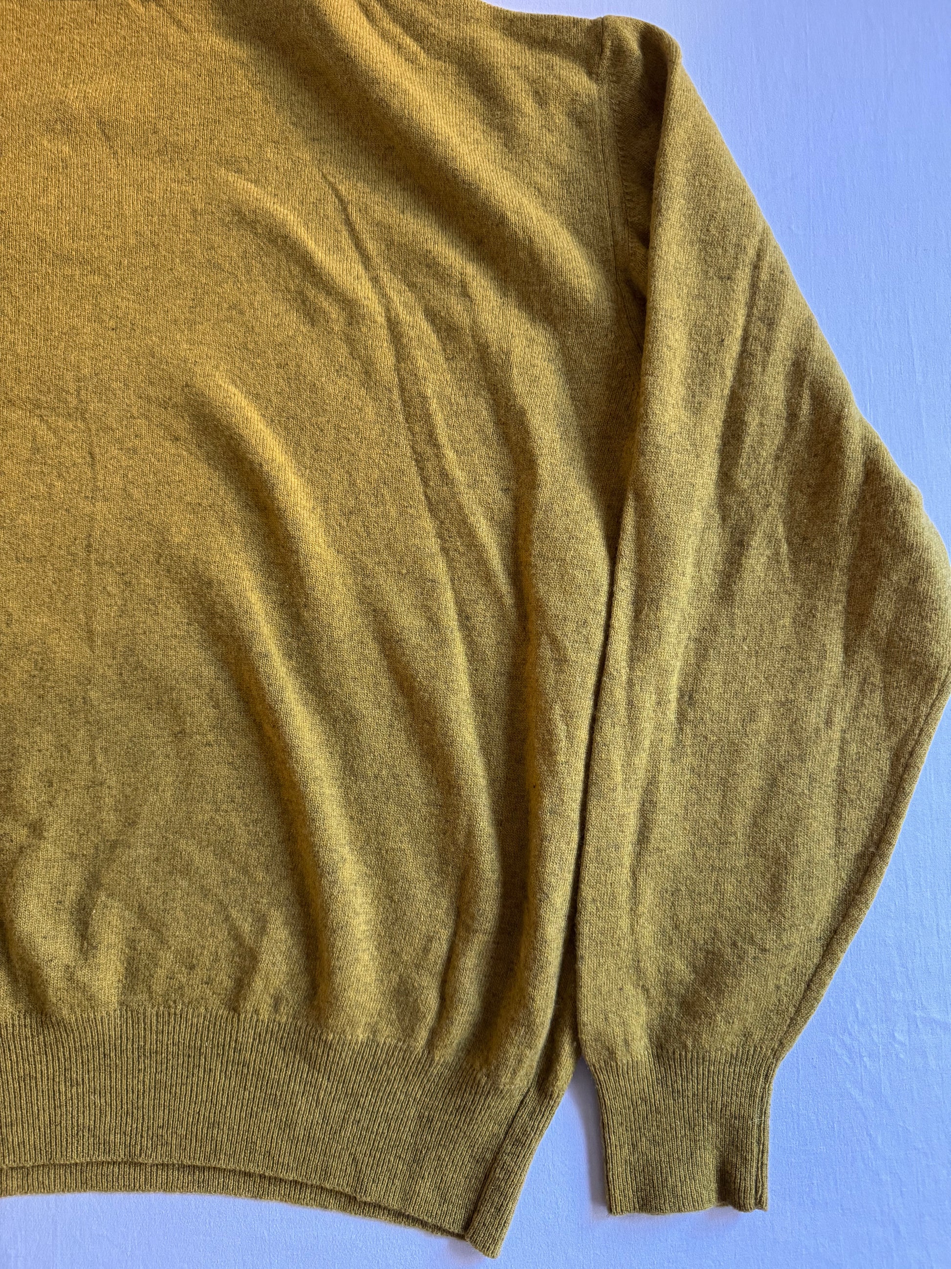 Pulover vintage într-o nuanță mustar, cu guler tip mocneck, fabricat în Italia din 75% lână de miel (lambswool). Textură moale și confortabilă, potrivit pentru layering sau ținute casual-chic. Se află în stare foarte bună, fără defecte vizibile.