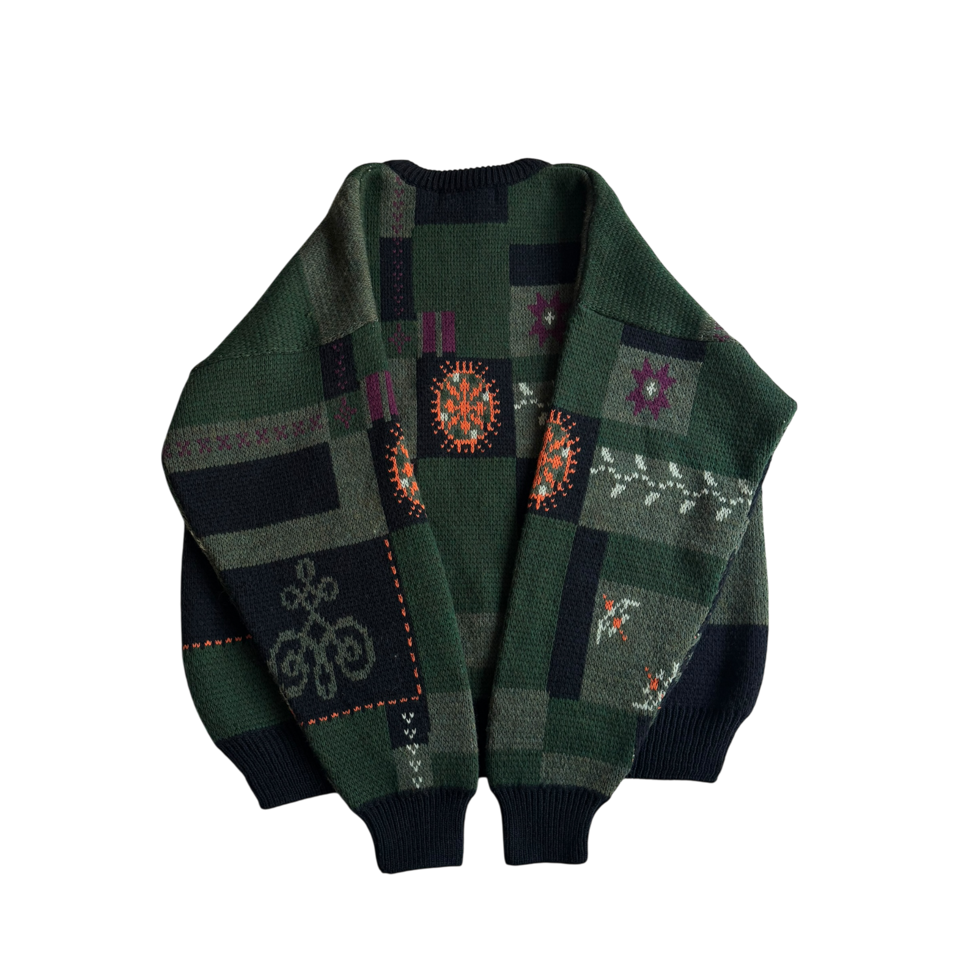 Pulover vintage pentru bărbați semnat O’Neill, cu pattern abstract, piesă statement cu estetică retro. Realizat dintr-un amestec de 50% lână și 50% acril, oferă căldură, confort și durabilitate. Croială lejeră, ideală pentru ținute casual. Fabricat în Italia și păstrat în stare foarte bună.