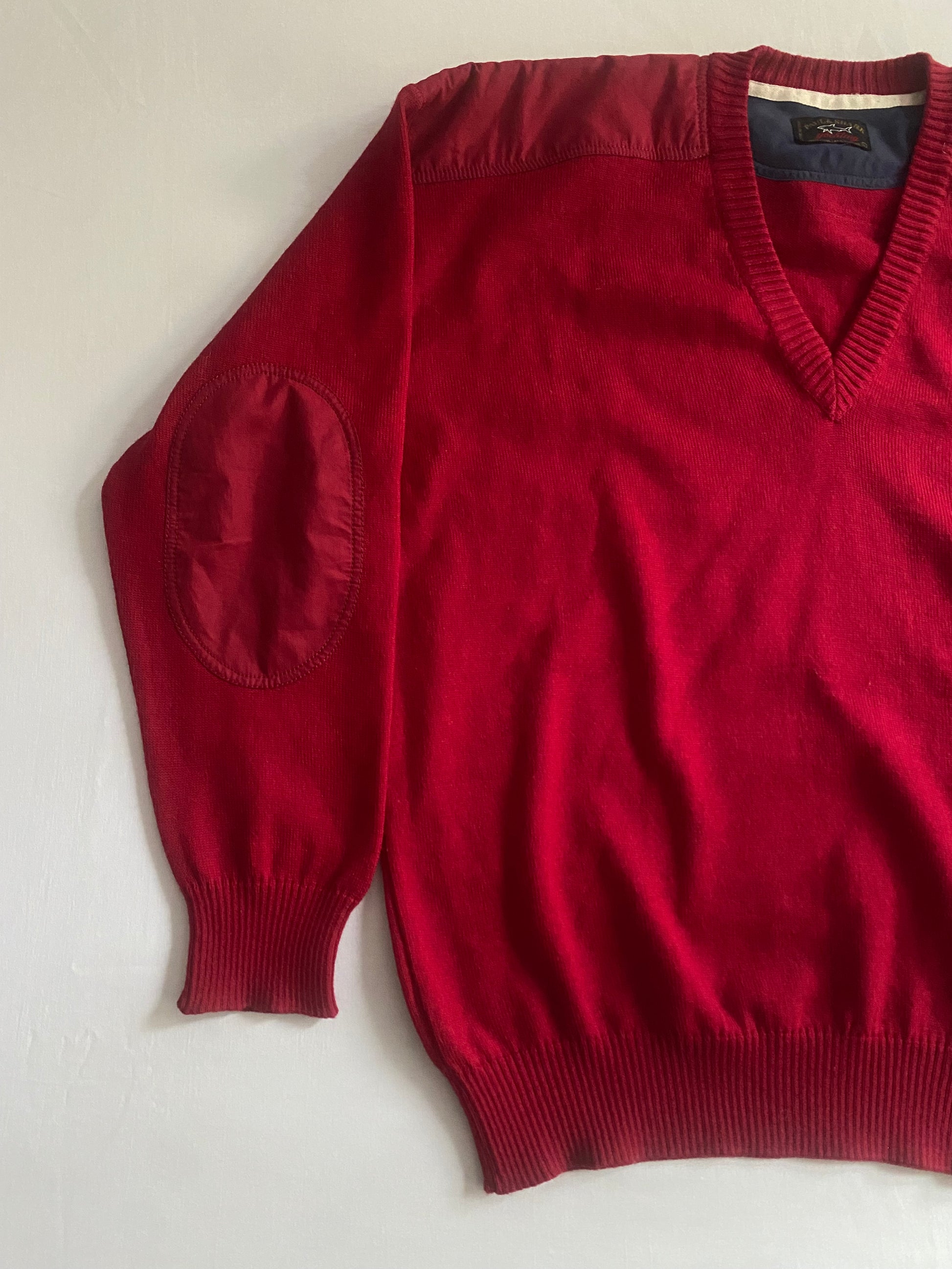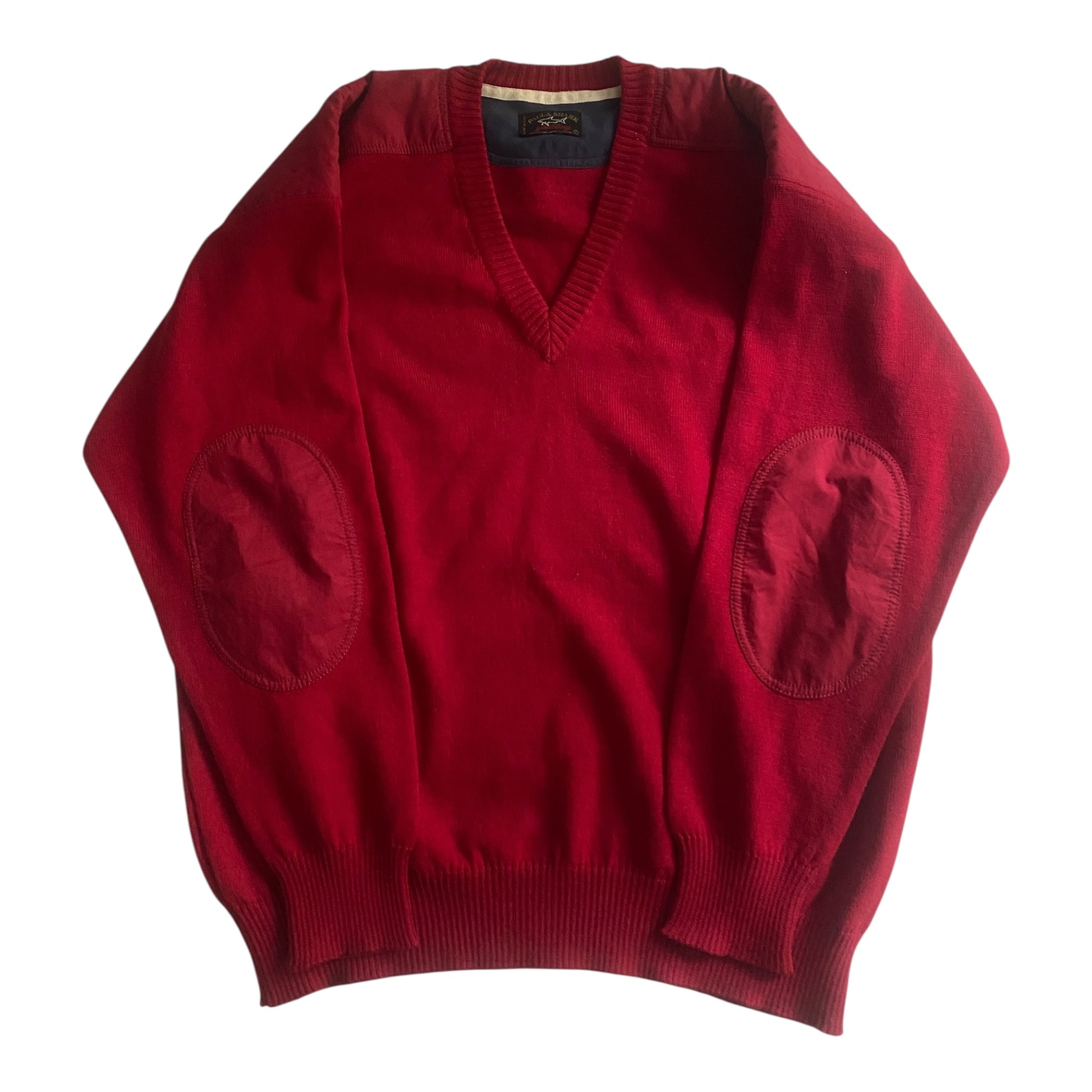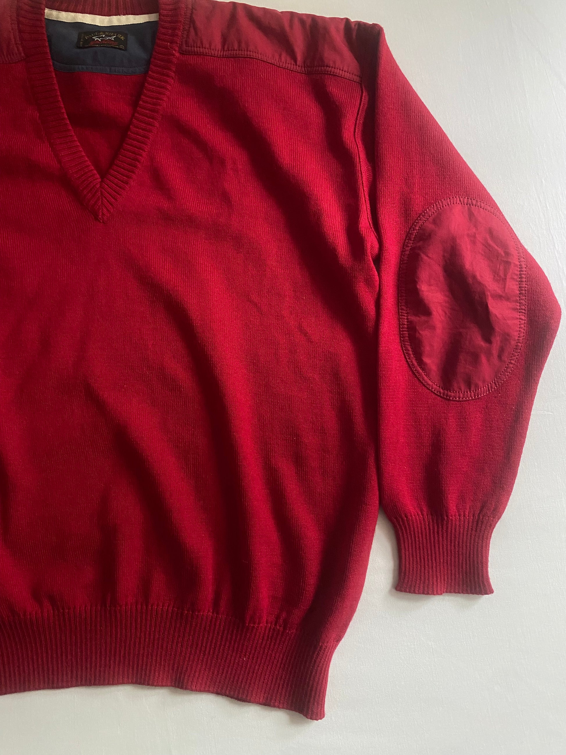 🦈 Pulover Vintage Paul & Shark – V-Neck Roșu – 100% Lână Virgină – Made in Italy – Men’s L