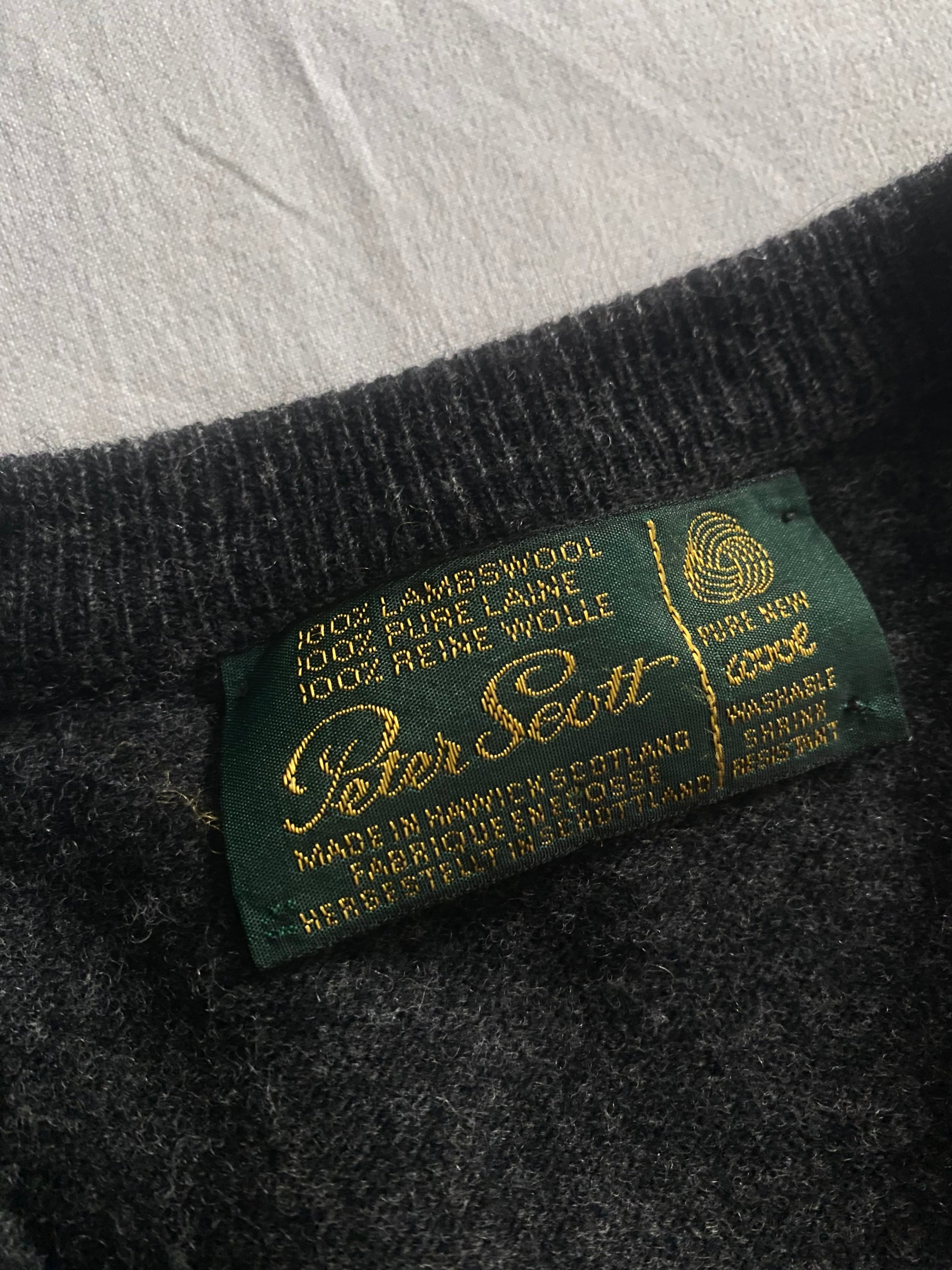 Pulover Vintage Peter Scott – Dark Grey V-Neck – 100% Lână Virgină – Made in Scotland – UK 42
