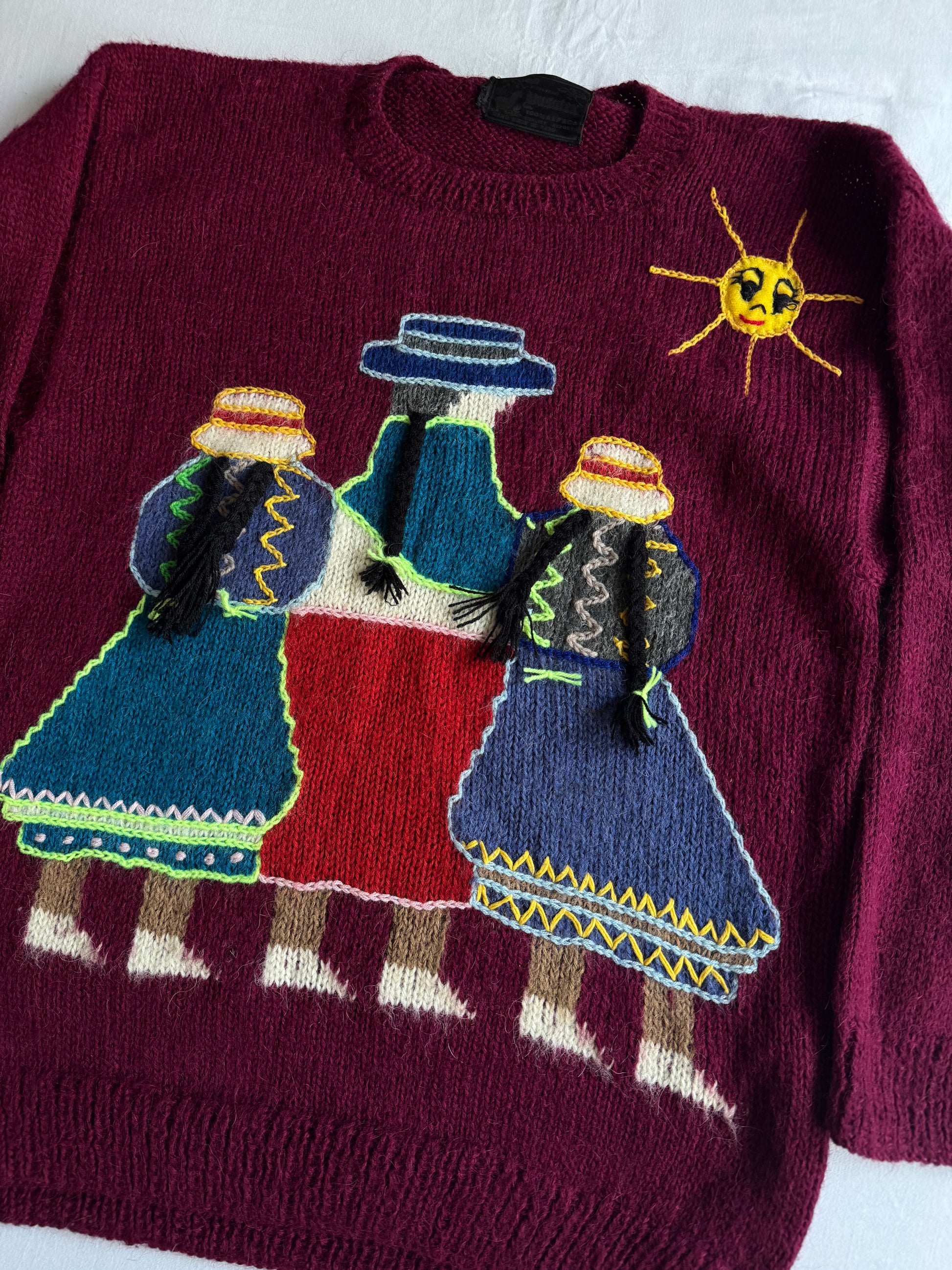 🧶 Pulover Vintage Tradițional Peruvian din Alpaca – L