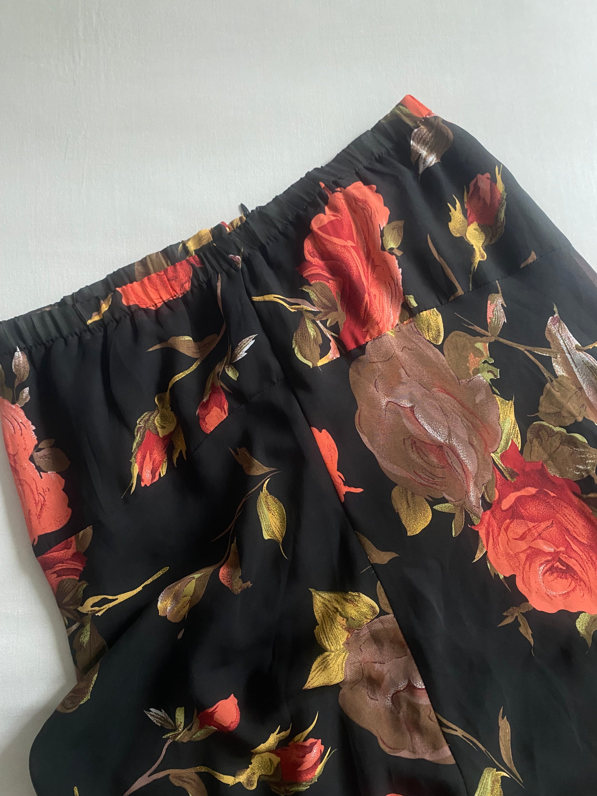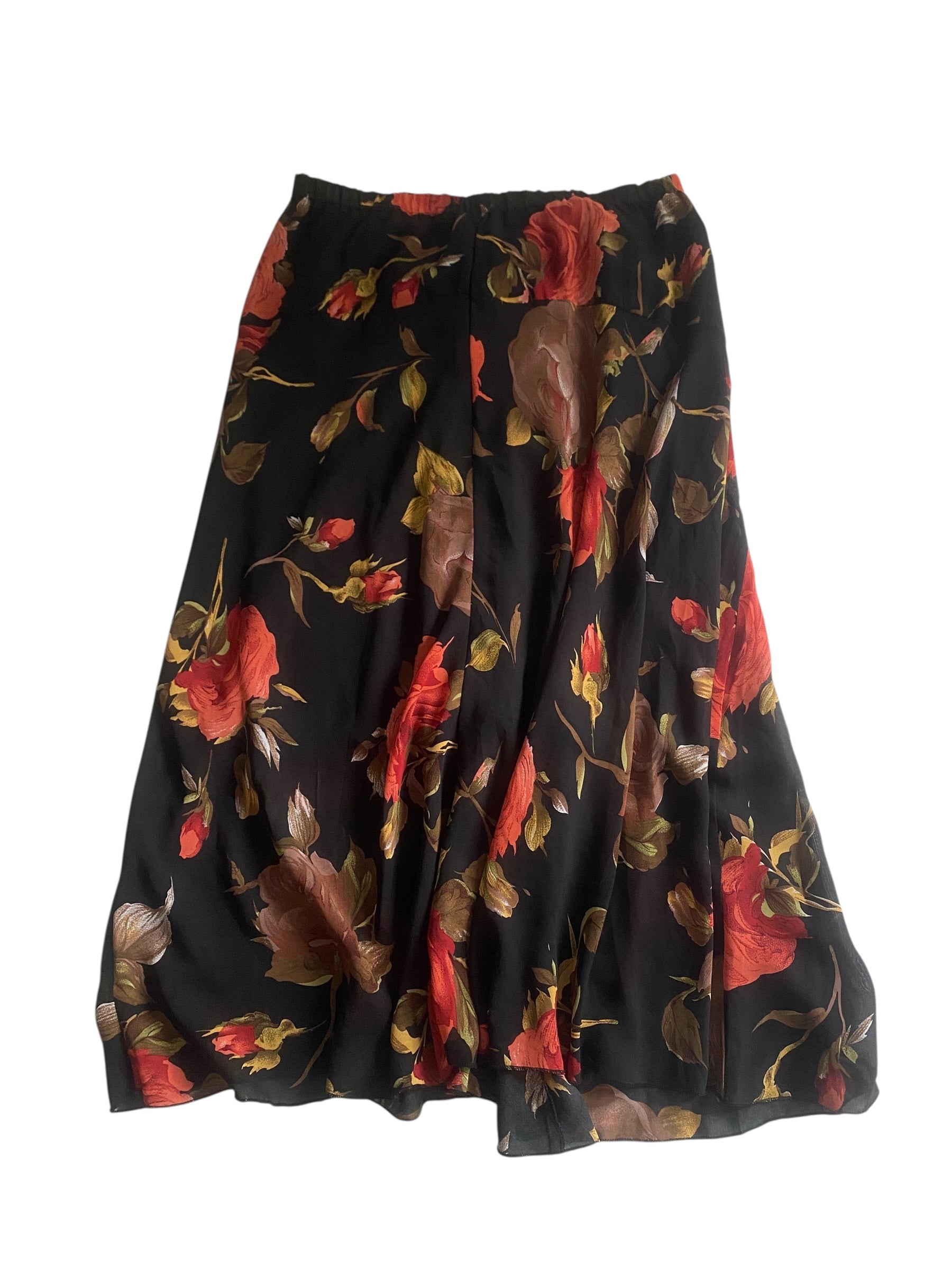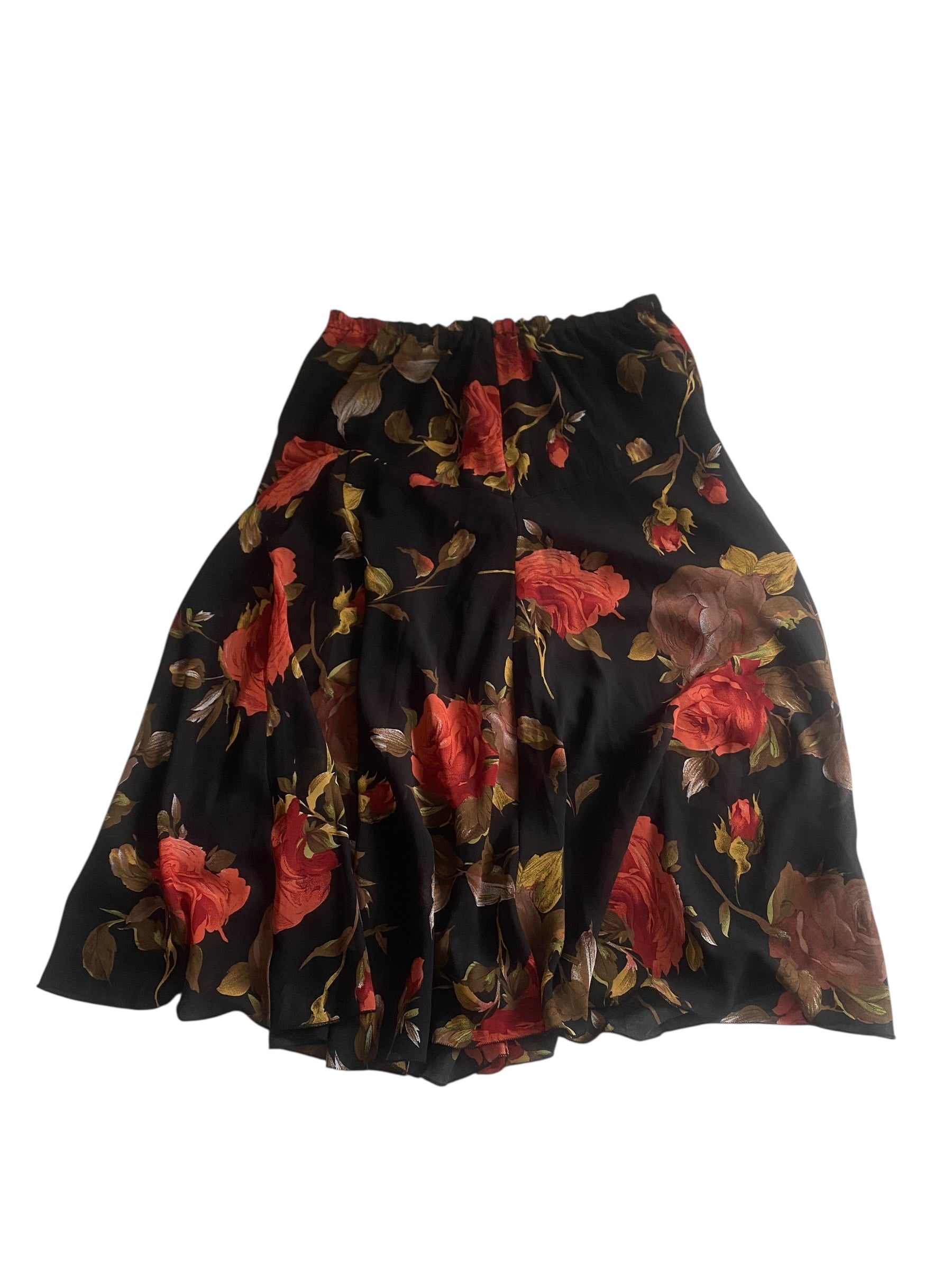 Fustă midi cu imprimeu floral tip trandafiri, croială lejeră și talie elastică pentru confort maxim. Estetică feminină, ușor romantică, specifică anilor 2000. Ideală pentru zilele de vară sau layering boho.