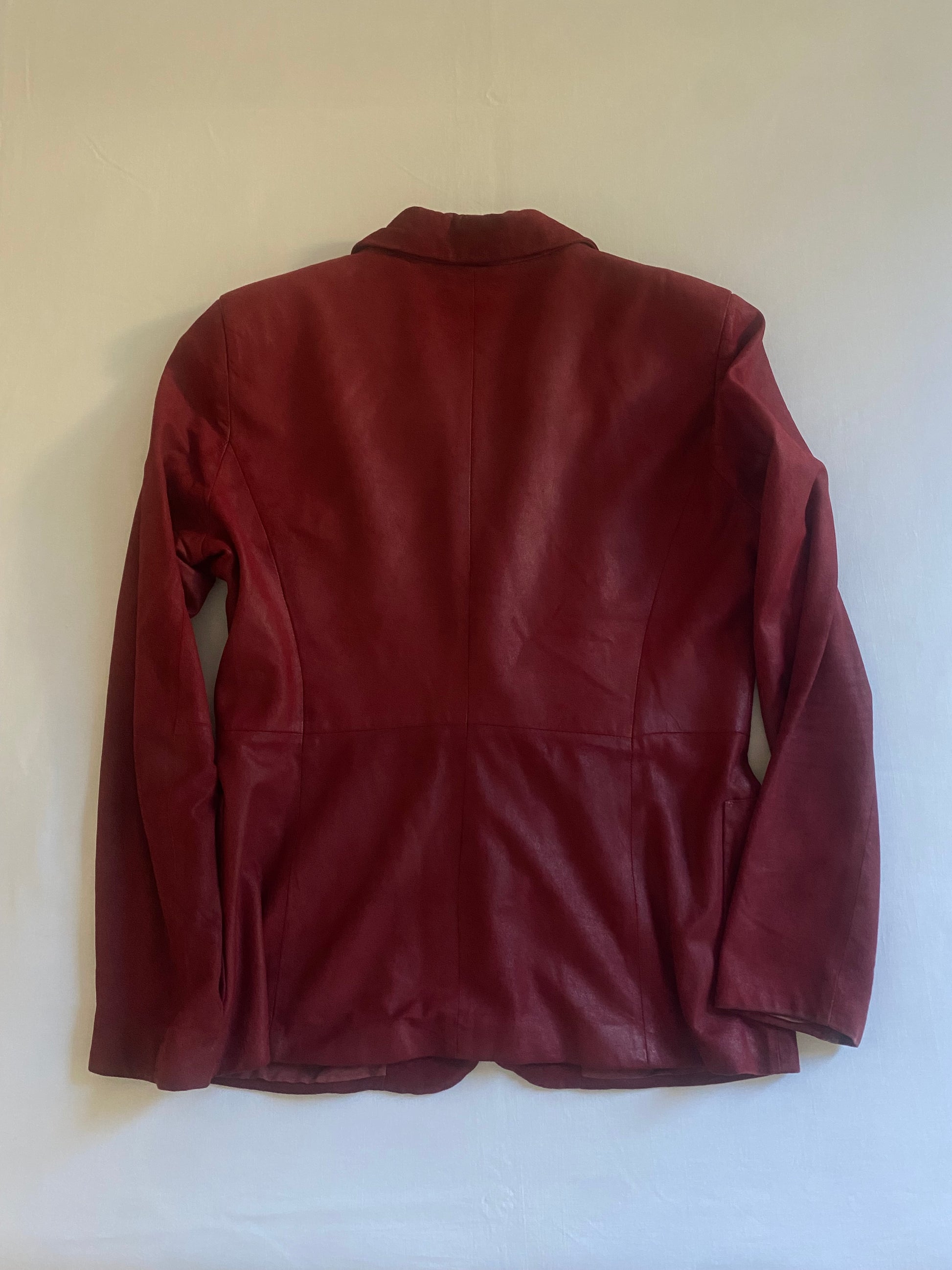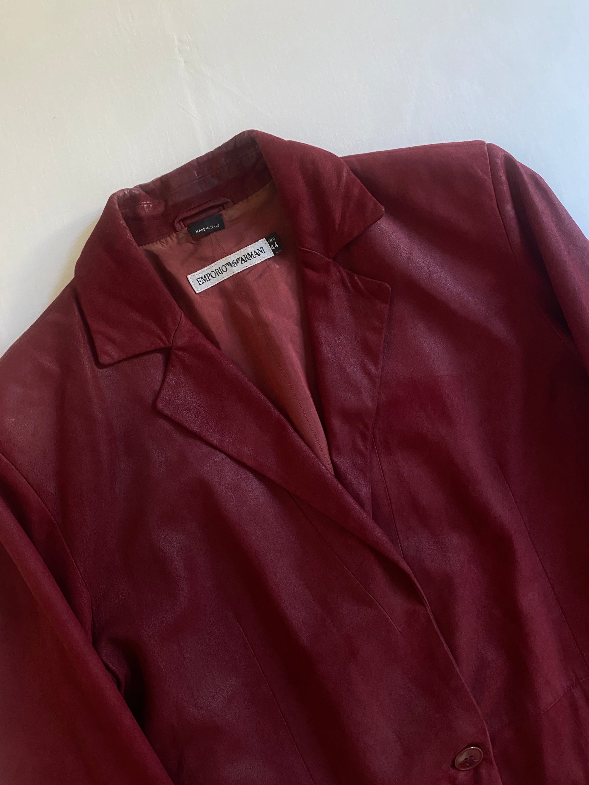 Sacou Vintage Emporio Armani – Piele Burgundy – Anii ’80 – Made in Italy – IT 44