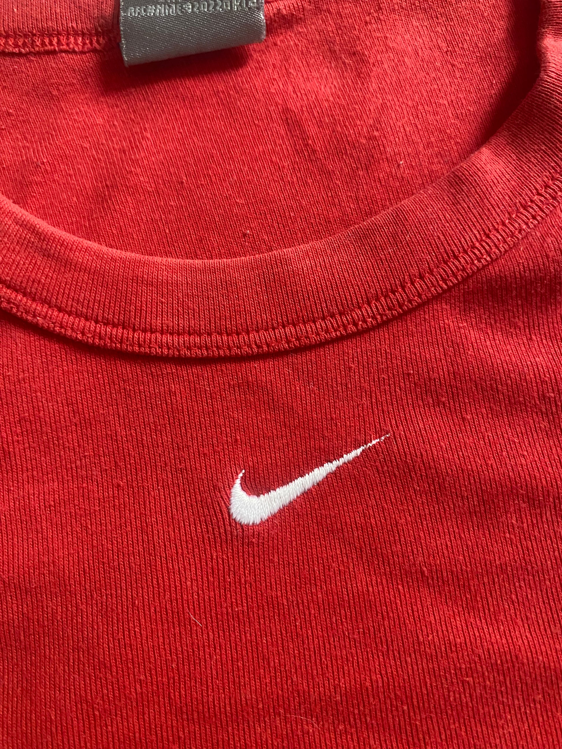 Top Nike vintage, reinterpretat în stil Y2K – croppat manual pentru un look edgy și feminin. Material moale, logo frontal discret, ideal pentru ținute casual, streetwear sau sporty. Se potrivește perfect ca piesă statement în layering.