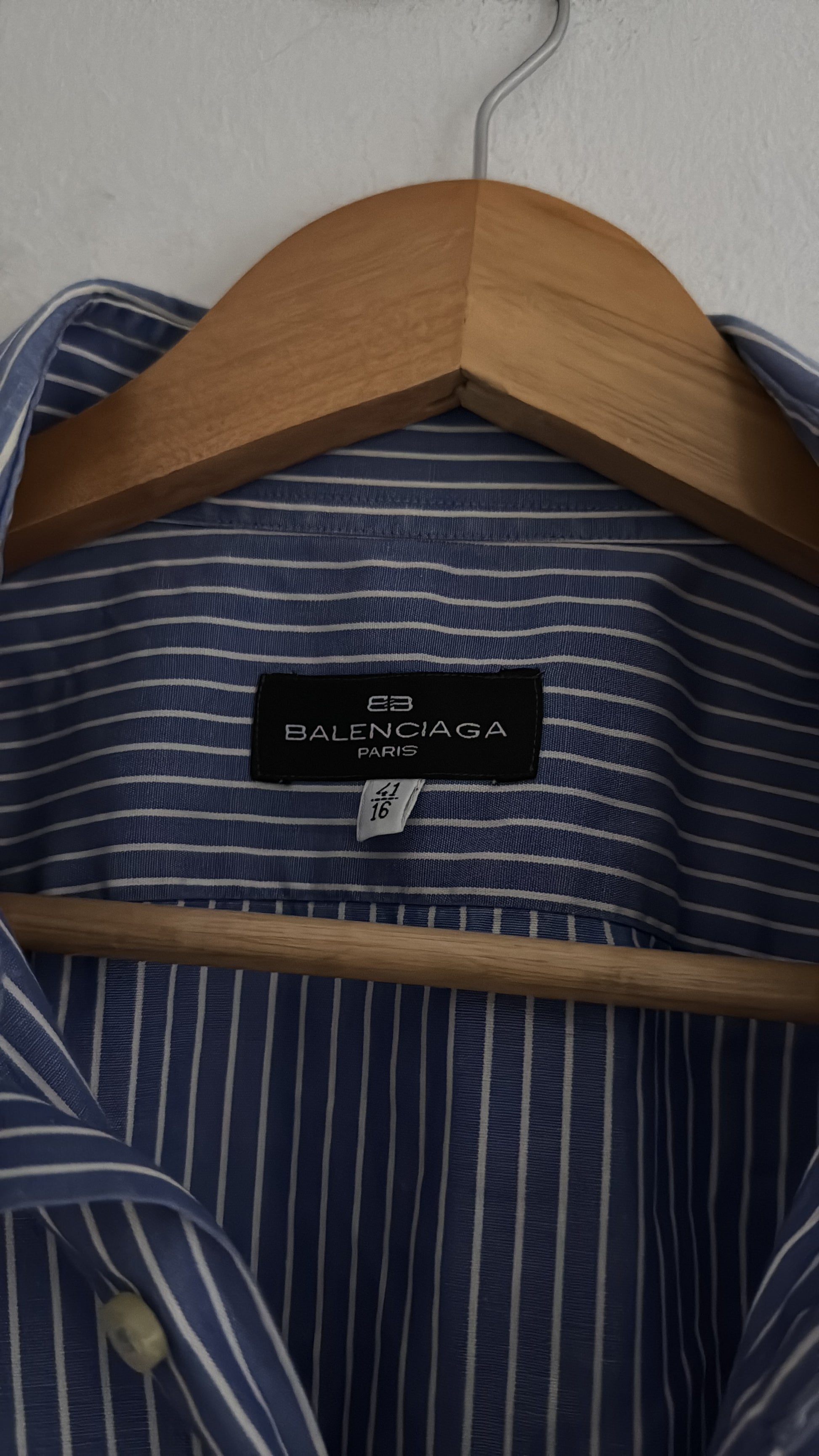 👔 Cămașă vintage Balenciaga / Blue Vertical Stripes (Mărime 41 / 16 - L Bărbați)
