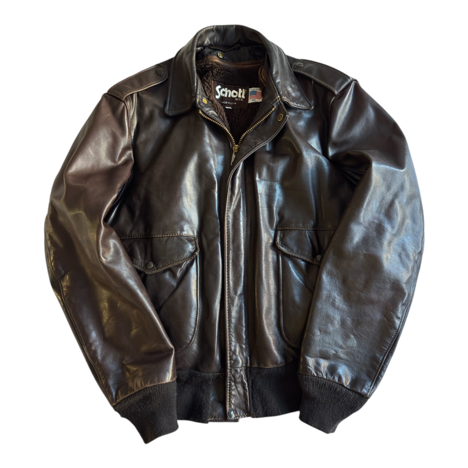 ✈️ Geacă de piele Schott NYC 184SM A-2 maro, bărbați L – piele de vacă autentică, Made in USA 🇺🇸