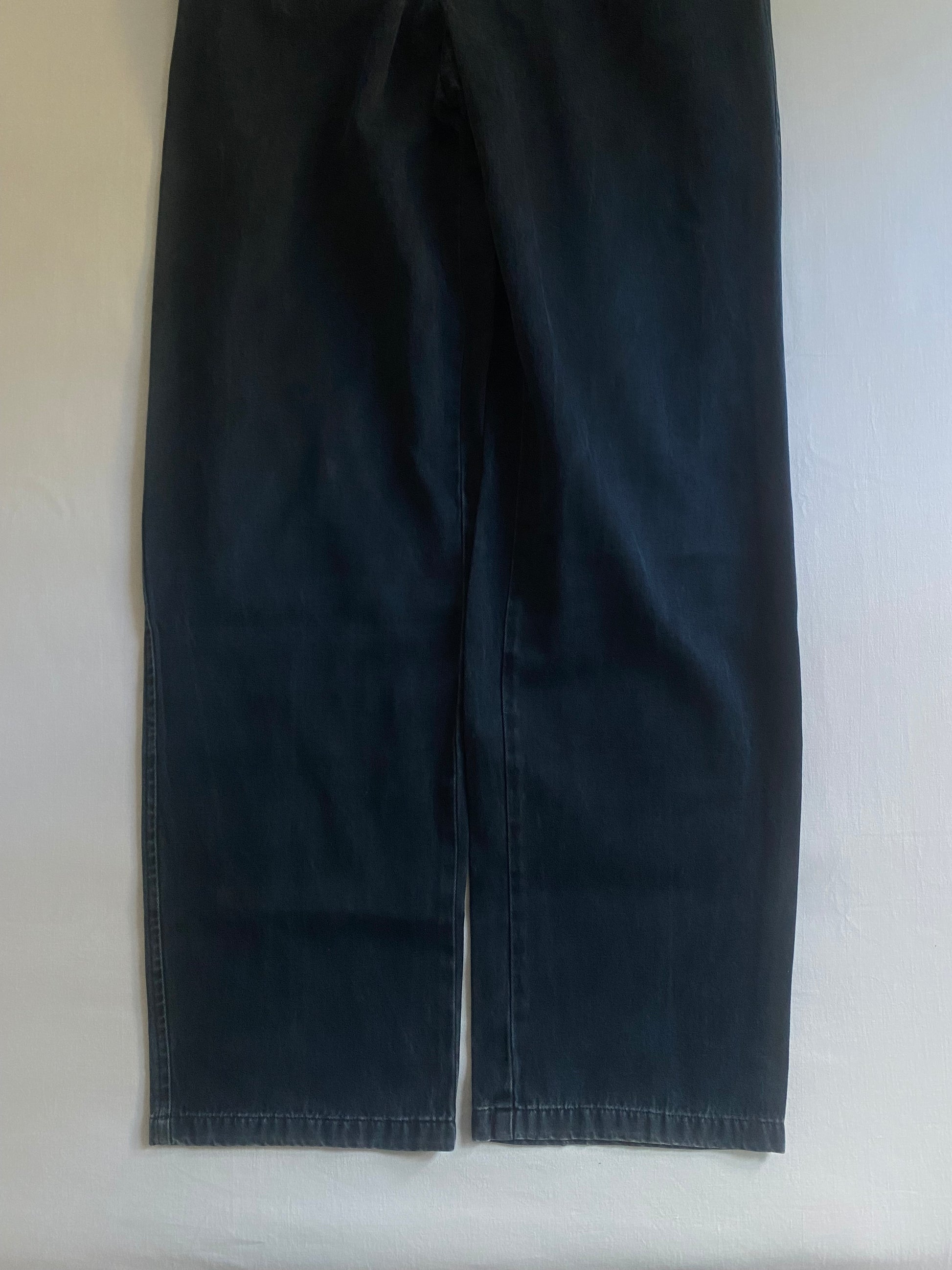 Pantaloni vintage Yves Saint Laurent în nuanță dark navy spălat – aproape washed black. Croială slack clasică, material ușor, rafinat. Piesa are un aer lejer, dar elegant, perfectă pentru ținute smart casual sau outfituri de arhivă.
