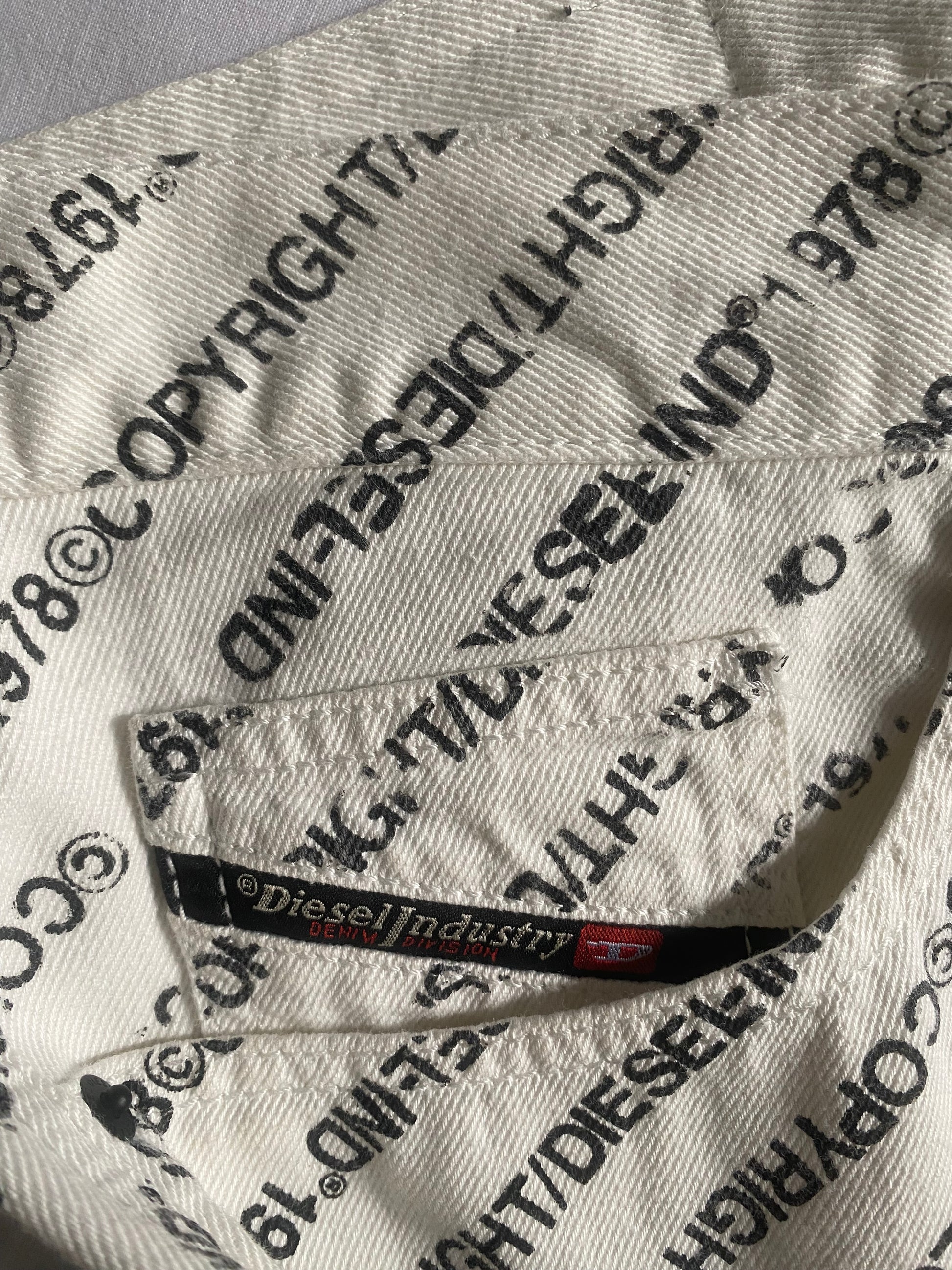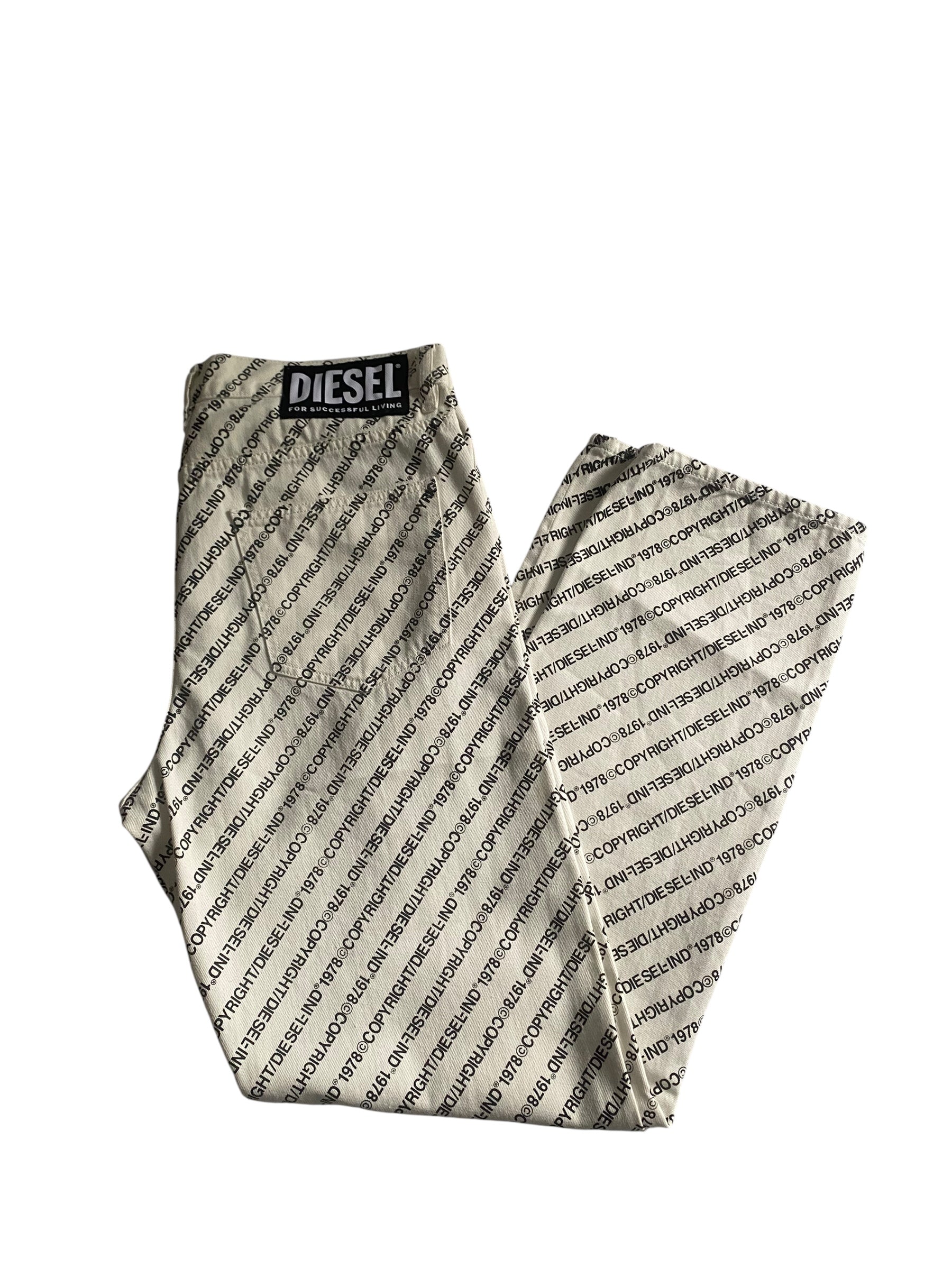 🤍 White Diesel Scripted All-Over Print Jeans – Size 33