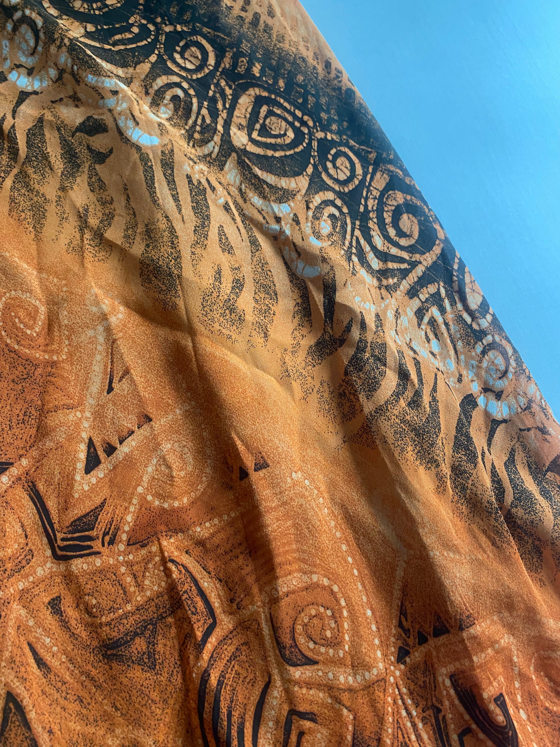 Fustă Y2K din material plasă semi-transparent, imprimată cu pattern modern, într-o nuanță vibrantă de portocaliu. Croială midi, talie elastică pentru confort maxim și adaptabilitate. Perfectă pentru un look fresh și statement, ideală pentru vară sau layering.